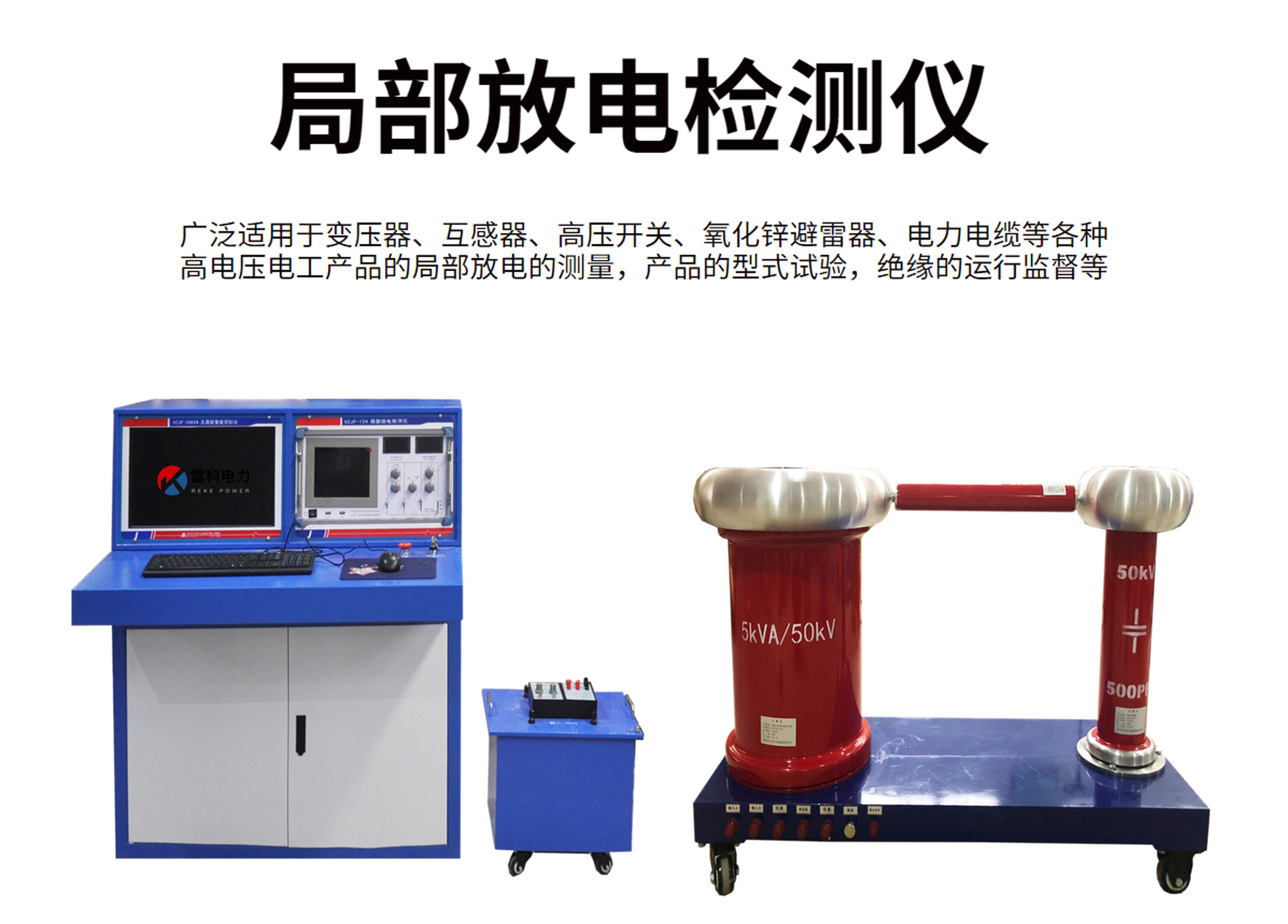 1. 適用于變壓器、互感器、高壓開關、氧化鋅避雷器、電力電纜等各種高電壓電工產品的局部放電的測量