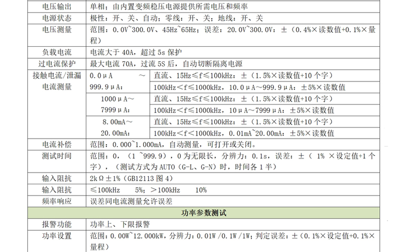 e)功率測(cè)試:支持1.000W-12.000kW功率測(cè)量范圍;