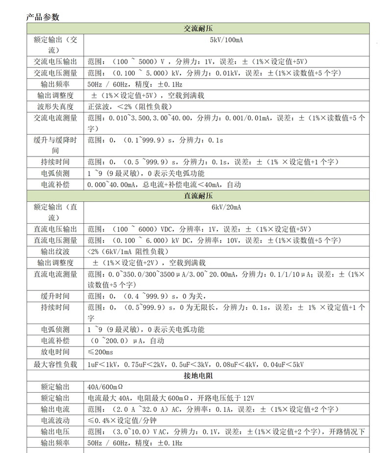 d)接地阻抗:40A/600mΩ,滿足醫(yī)療器械行業(yè)R<100mΩ的測(cè)試要求;