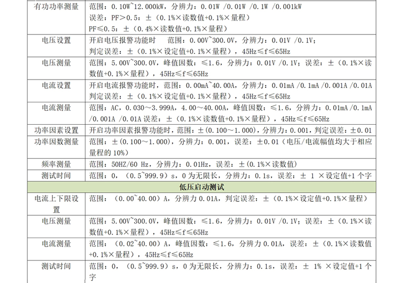 e)功率測(cè)試:支持1.000W-12.000kW功率測(cè)量范圍;